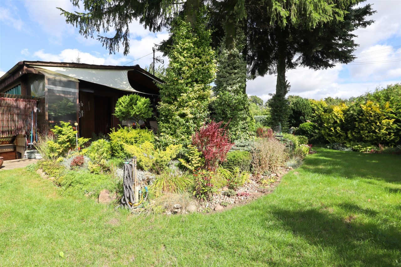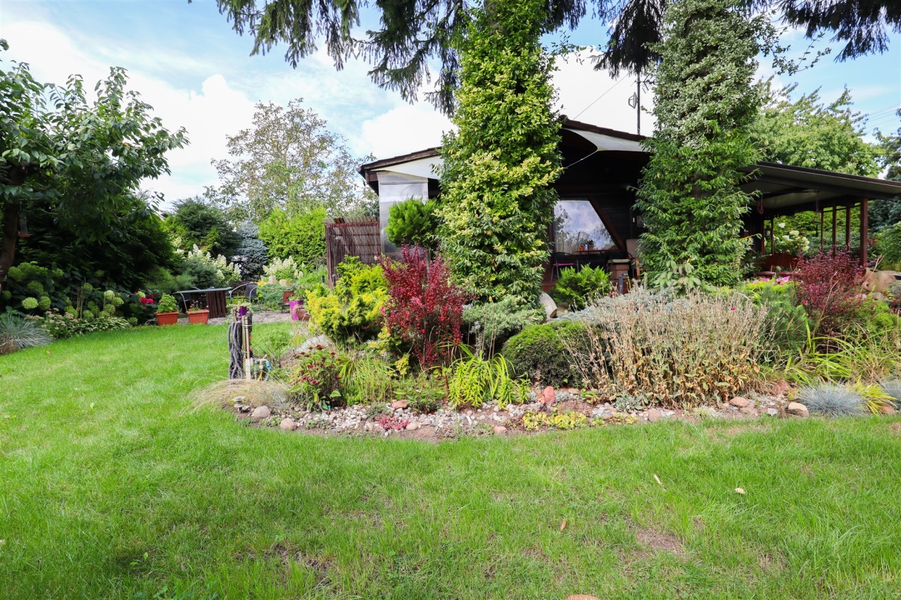 Na działce znajduje się funkcjonalny domek (35 m²) z dużym tarasem (13,5 m²) – idealnym na letnie wieczory i weekendowe spotkania. Co ważne, domek przygotowany jest do użytkowania przez cały rok – dzięki ogrzewaniu możesz korzystać z niego także poza sezonem.